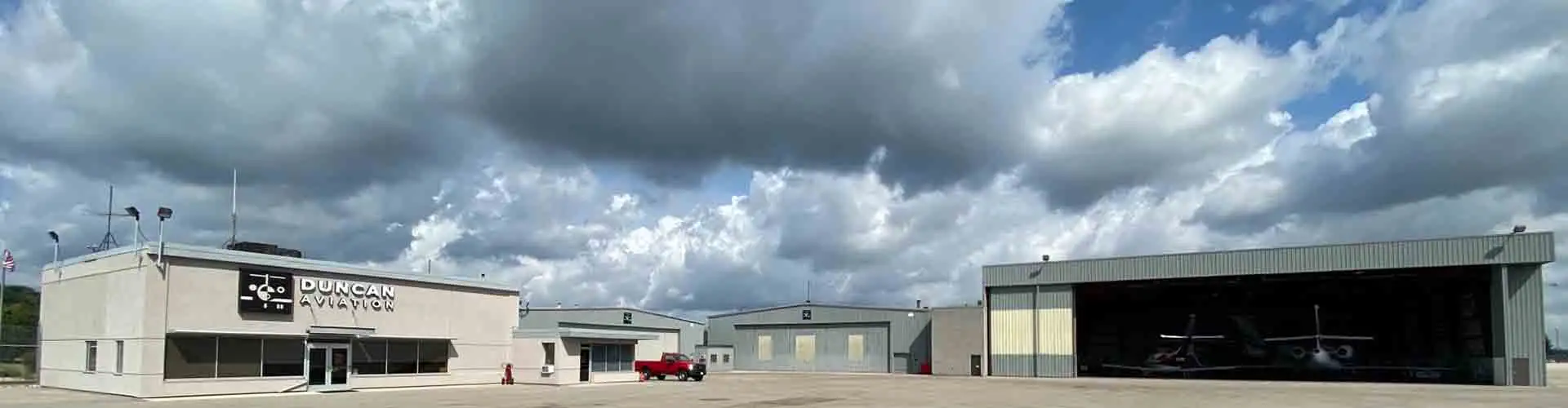 Duncan Aviation’s Kalamazoo, Michigan, facility is located at the Kalamazoo/Battle Creek International Airport. The recently remodeled lobby includes a large front desk, kitchenette, sitting lounge, pilot’s lounge, individual sleep rooms, and modern office and meeting areas.